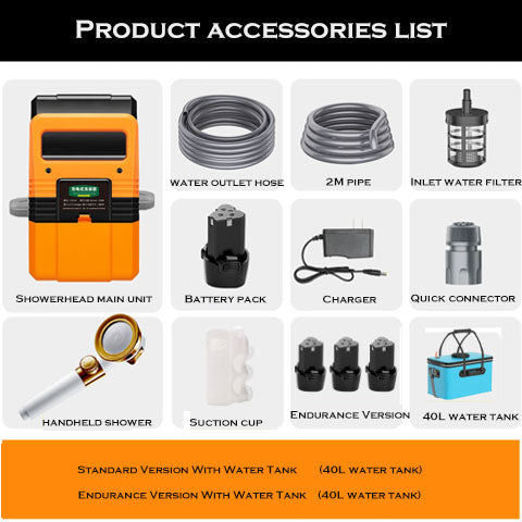 It has long-lasting power and uses a portable power bank. With stable water pressure, it can meet the needs of your whole family. Not only is it aesthetically pleasing, but it is also safe and can fulfill various needs such as showering, car washing, and watering plants. It is incredibly practical, and you deserve to have it!